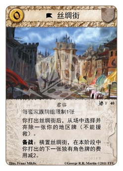 你打出丝绸街后,从场中选择并弃除一张你的地区牌(不能援救)。
